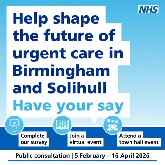 Unpaid Carers across Birmingham are invited to join either an in-person (Thursday 19 March) or online session (23 March) to discuss urgent care services across Birmingham. Participants will receive a Love2Shop voucher as a thank you for their time.